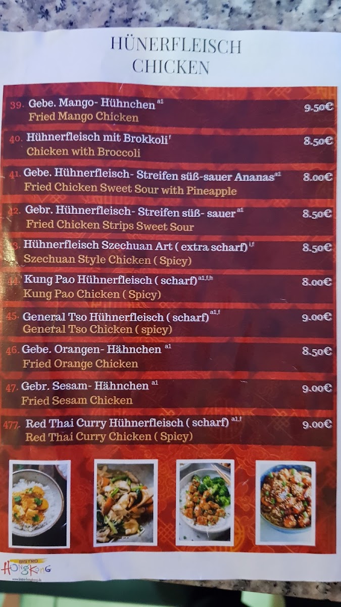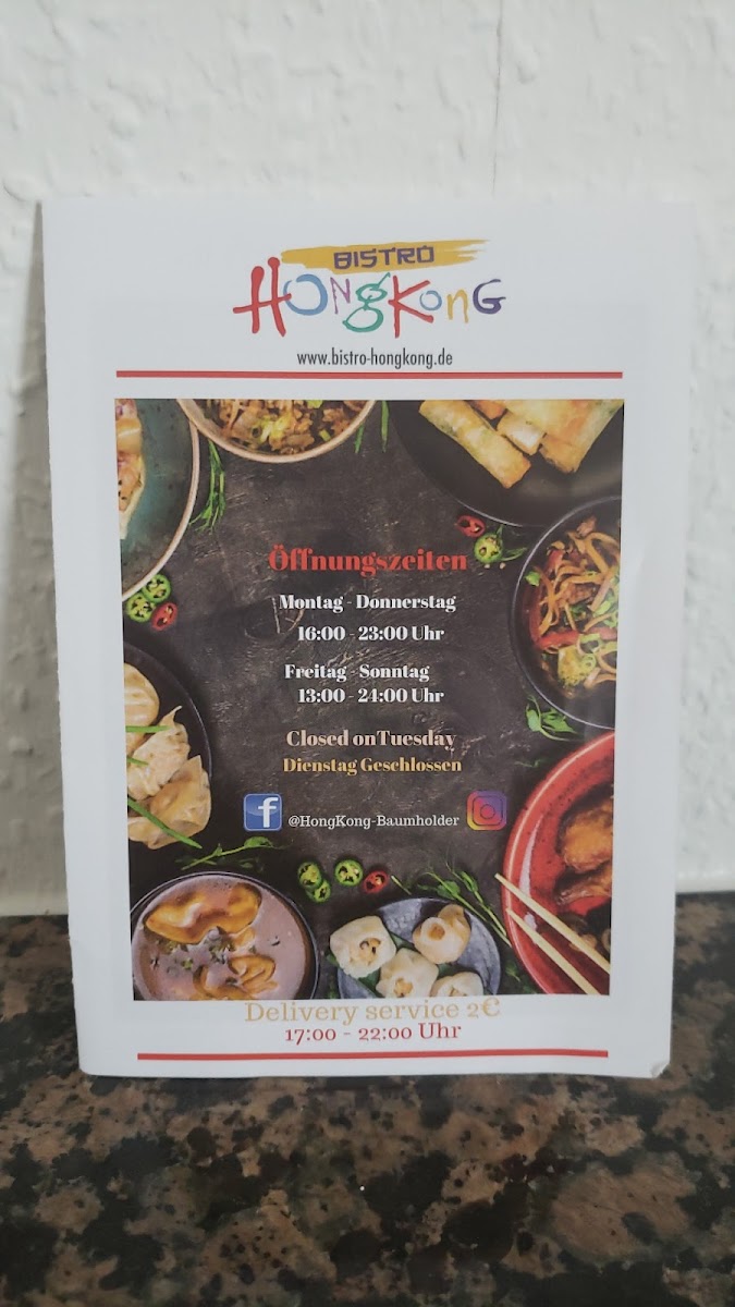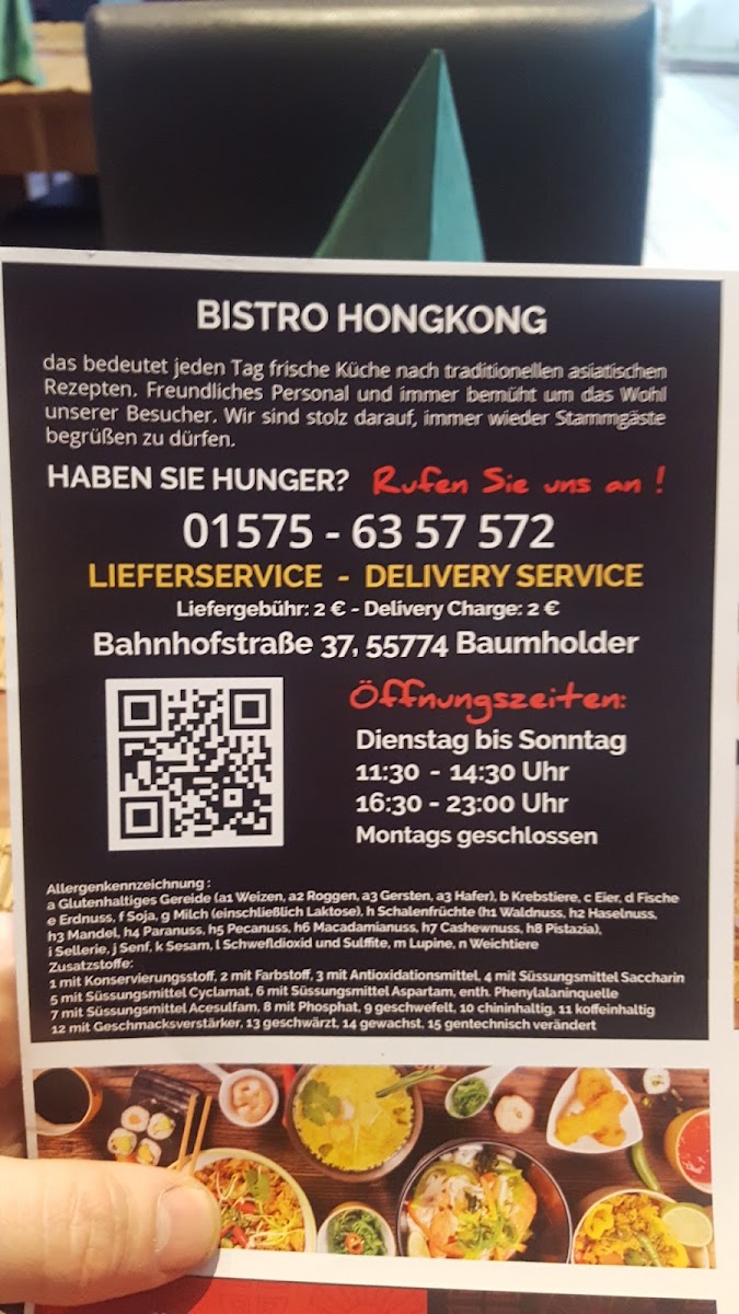 Welcome to Bistro Hongkong, a delightful restaurant nestled in the heart of Baumholder, Germany. This culinary gem is not just a feast for the stomach but also for the senses. Customers rave about their diverse and flavorful menu, featuring standouts like the Thai chicken curry and duck curry, both praised for their authentic taste and generous portions. The ambiance invites you to dine comfortably, whether inside or on their lovely patio.